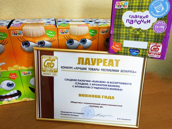 Статус «Новинка года» в рамках конкурса «Лучшие товары Республики Беларусь» 2017 года присужден кукурузным палочкам ООО «Талань-М» за наличие в составе мультиминерального комплекса Аквамин F.