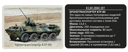 Для мальчиков КУКУБИКИ обновили коллекцию "Военная техника" . Теперь коллекция состоит из 8 игрушек военной техники и 24 магнитов. На обороте магнитов из коллекции "Военная техника" указаны основные технические характеристики самолётов, вертолётов, боевых машин. Знакомиться с техническими параметрами военной техники будет интересно не только мальчикам, но и их папам.